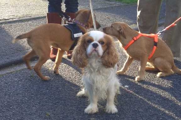 Da wollte mein Mensch heute Mittag ohne mich eine schnelle Runde drehen und blieb dann kurz hinter der Haustüre stehen. Er wurde Beobachter eines flotten Dreiers - im Vordergrund Kenzo ca. 2 Jahre Jung und im Hintergrund Geschwistertreffen.